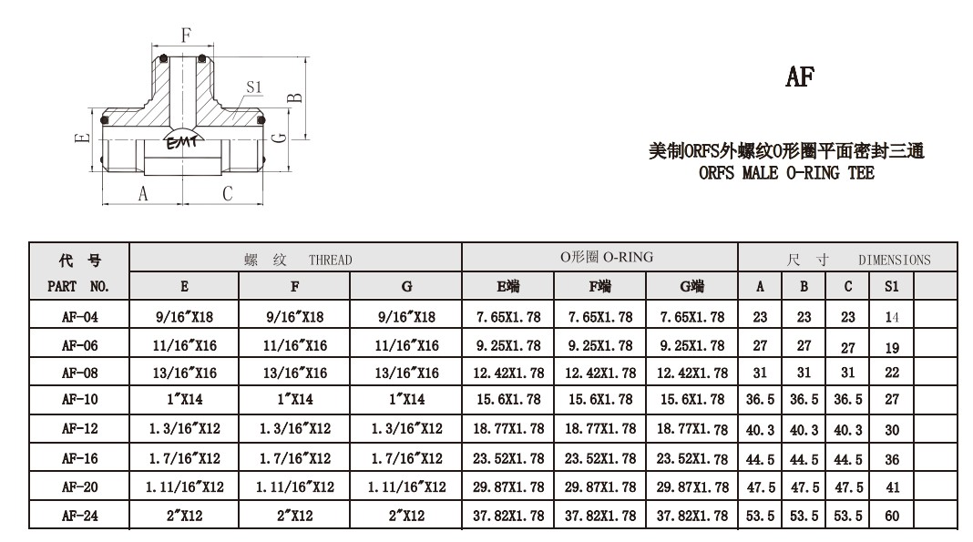AF 美制ORFS外螺纹O形圈平面密封三通