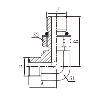 1F09-OG 90°Bend American ORFS Male O-Ring Flat Seal / American SAE Male O-Ring Heavy Series ISO 11926-2
