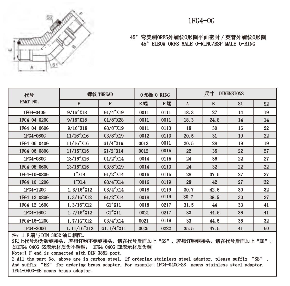 1FG4-OG 45°bend American ORFS male O-ring flat seal / British pipe male O-ring