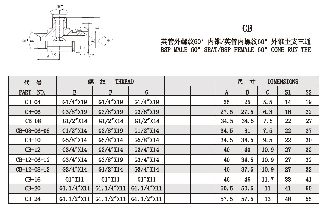 CB British pipe male thread 60°inner cone / British pipe female thread 60°outer cone main branch tee