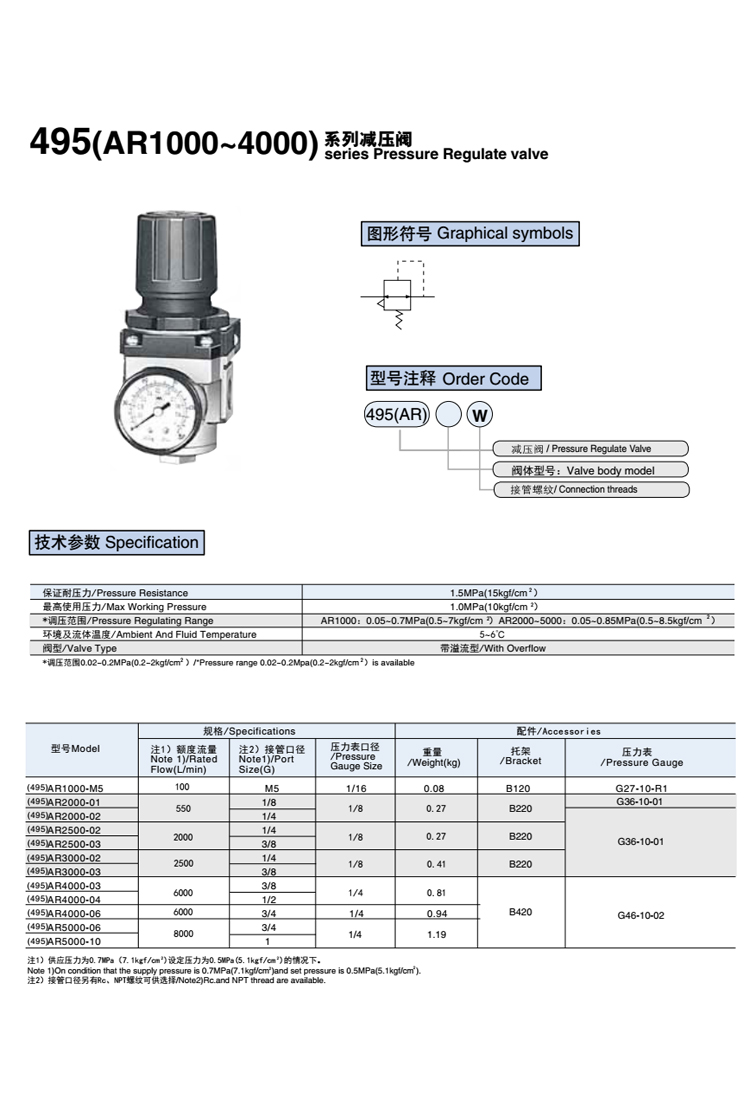 Air source treatment element filter pressure reducing valve 495 series, for details, please visit the company website http://www.wxpneum.com.cn or call 0510-83591123
