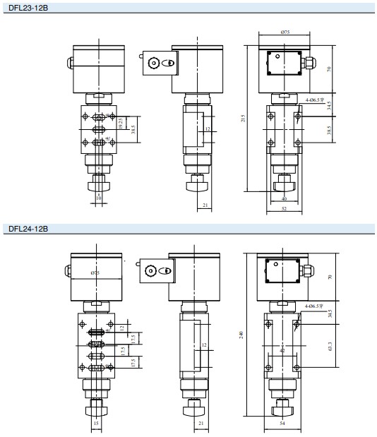 DFL series electromagnetic direct-acting reversing valve, the main valve structure is cut-off type, the installation is plate type connection, with manual locking device. The input power supply of this series of valves is AC220V, after full-wave rectification, the true current coil drives the main valve commutation, which provides convenience for users to configure the power supply on site. The main valve has a cut-off structure with good anti-pollution performance. The main valve body is made o