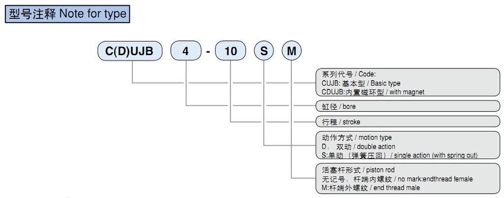 动作形式 / Motion type 双动/单动(弹簧压回)/ double or single action(with spring out)