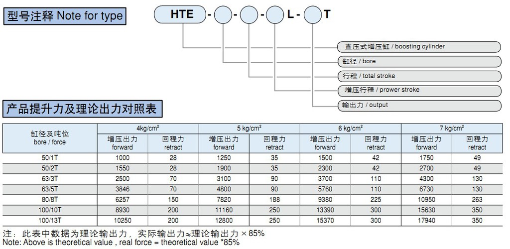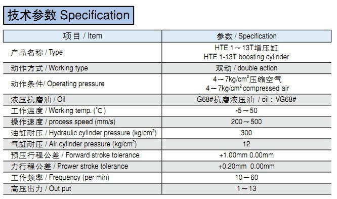 Technical parameterSpecification item/ Item parameter/ SpecificationProduct name/ TypeHTE 1~13T boosting cylinder HTE 1-13T boosting cylind