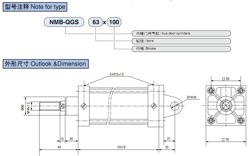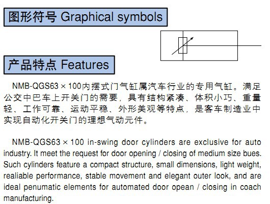 Technical parametersSpecification itemItem parameterSpecificationCylinder diameterDia 63Working medium/ Working medium: Dry and clean compressed air containing oil mist Dry and