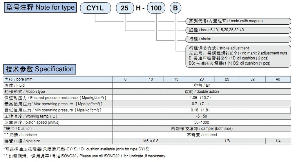 *可选择油压吸震器(只限滑尺型-CY1S) / Oil cushion available (only for type CY1S)