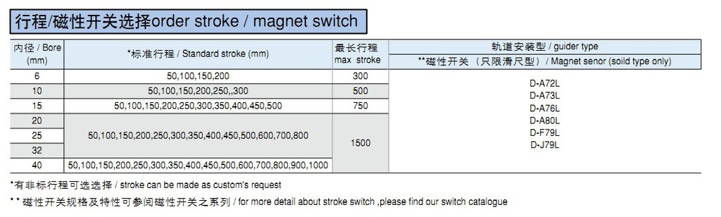 内径 / bore (mm) 6 10 15 20 25 32 40