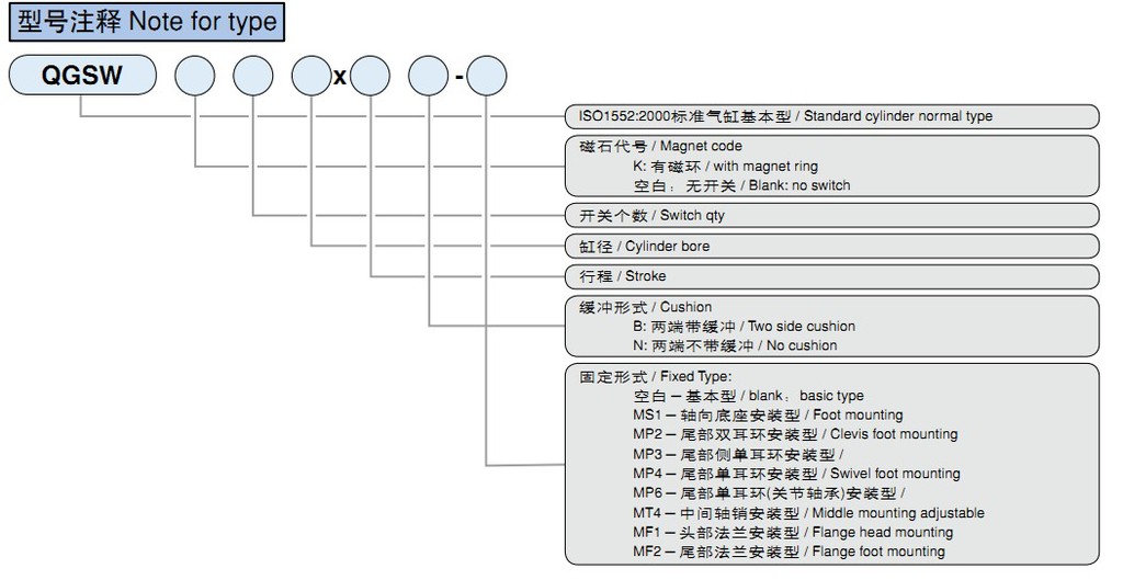 QGSW系列气缸是欧洲型轻型气缸,结构紧凑,安装形式和