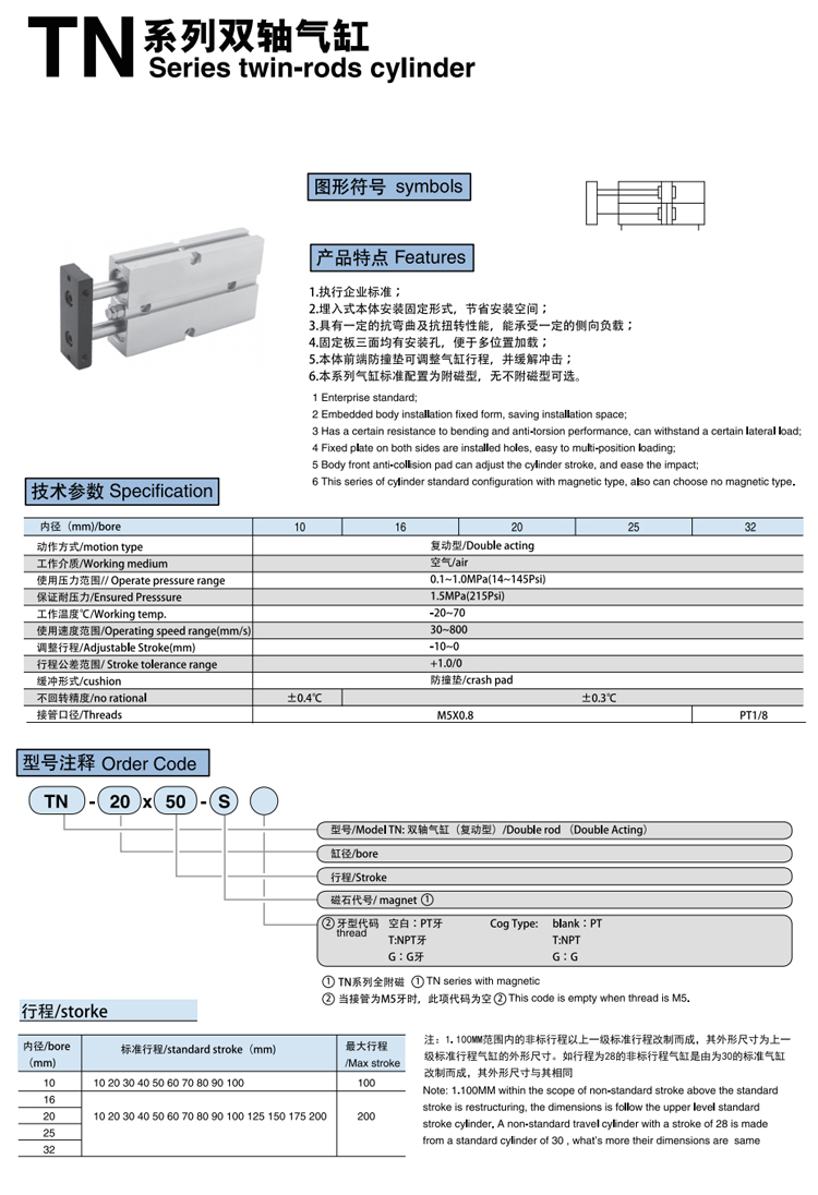 Non-standard customization of double-cylinder cylinder TN (TDA) series can be customized according to technical parameters.