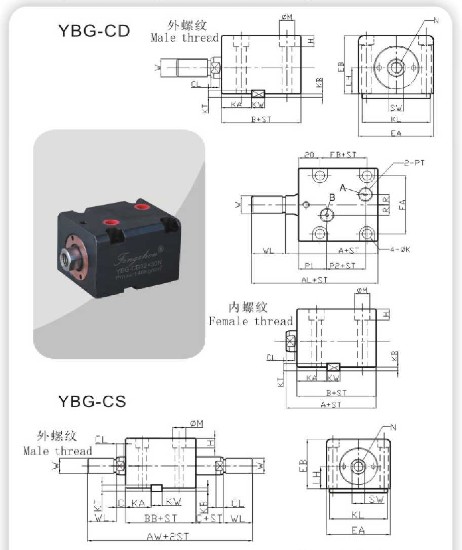 YBG-CD/CS油压侧向单轴/双轴配管式薄型缸 | |