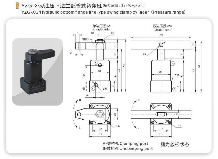 YZG-XG/Hydraulic lower flange piping type angle cylinder