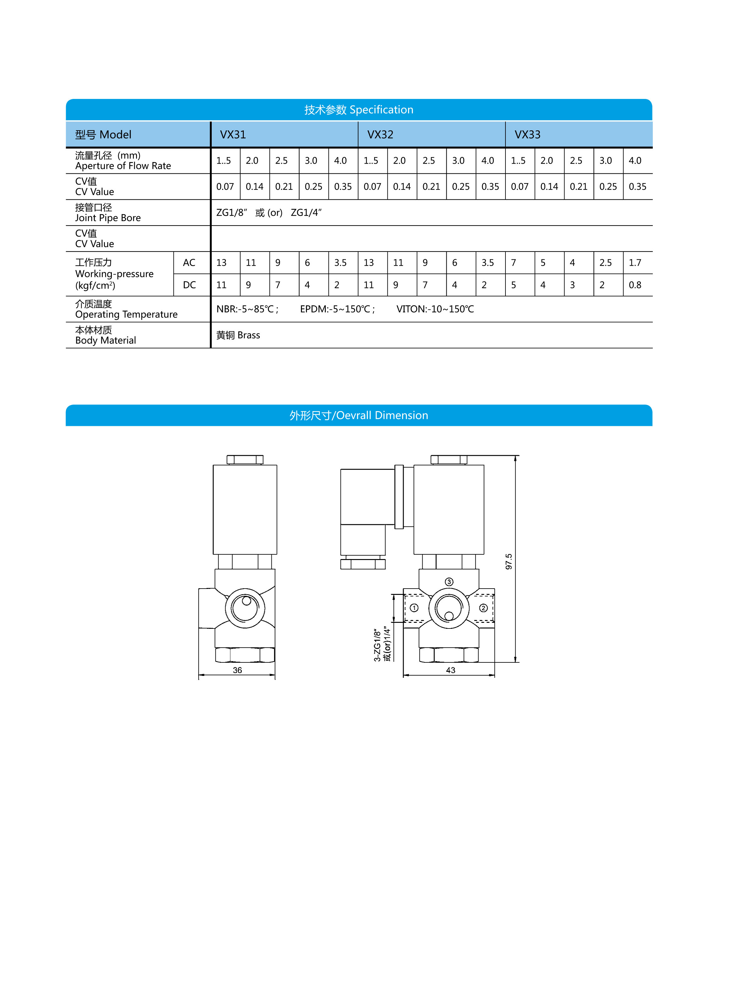 VX系列二位三通直动式电磁阀