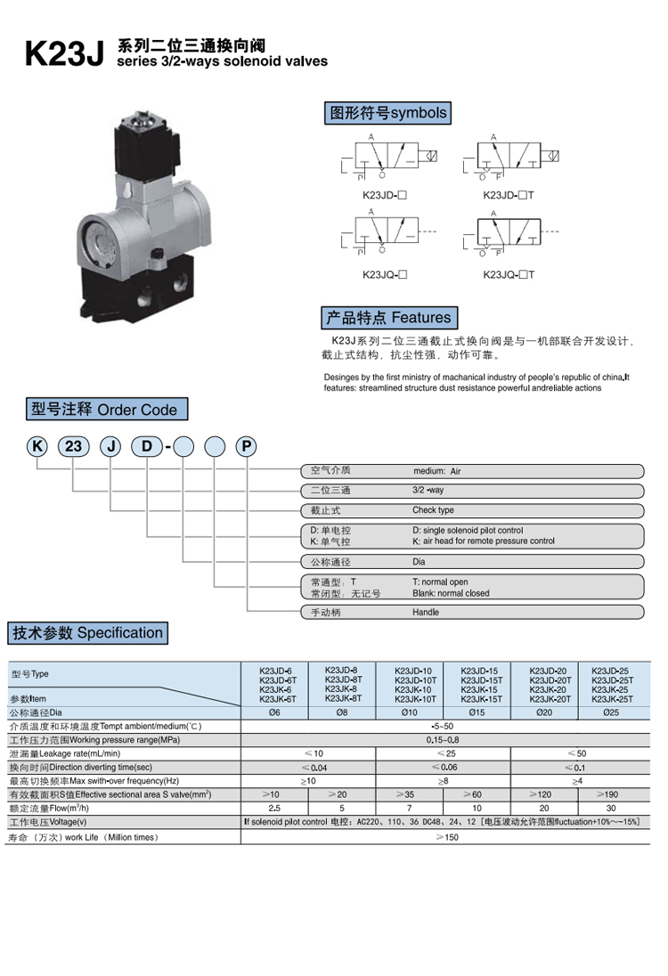K23J series two-position three-way stop-type reversing valve Product features: K23J series two-position three-way stop-type reversing valve is a combined design of a machine part reversing valve, with reasonable structure and reliable action.