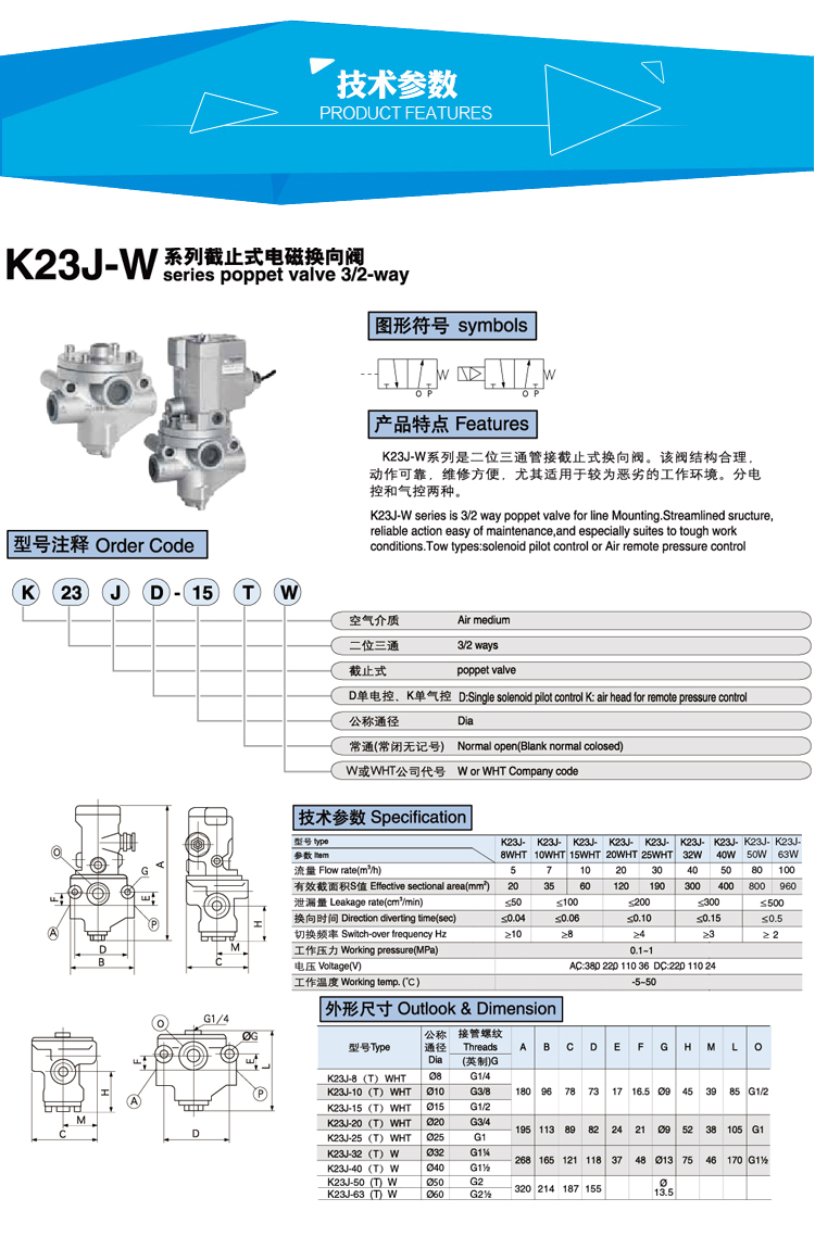 Huatong Pneumatic K23JD-50-63WHT two-position three-way cut-off electric control directional valve solenoid valve, K23JD-W large diameter 2 inch 2-1/2 inch pneumatic solenoid directional valve