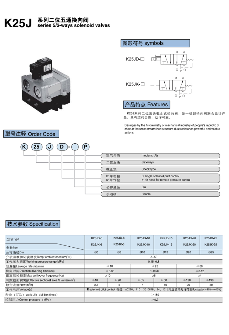 K25J series two-position five-way stop type reversing valve Product features: K25J series two-position five-way stop type reversing valve is a joint design product of the reversing valve of one machine department, with reasonable structure and reliable action.