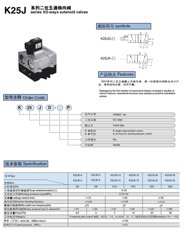 K25J series two-position five-way stop type reversing valve Product features: K25J series two-position five-way stop type reversing valve is a joint design product of the reversing valve of one machine department, with reasonable structure and reliable action.