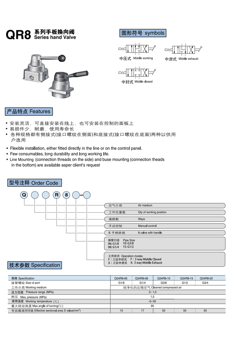QR8 series manual rotary valve, flexible installation, can be installed directly on the line, can also be installed on the control panel, less wearing parts, wear-resistant, long service life.