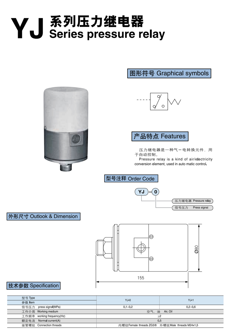 Huatong Pneumatic YJ series pressure relay, pressure relay is a gas-electric conversion element used for automatic control.
